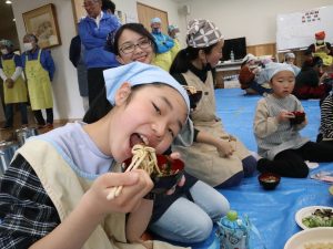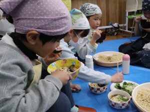 自分たちで作ったうどんに興味津々の子どもたち。笑顔あふれる、にぎやかな一日となりました。