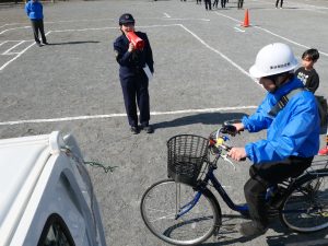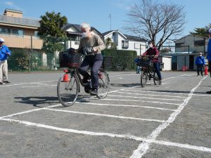 参加者はそれぞれ自転車に乗り、特設コースを回りながら安全な走行について指導を受けました。