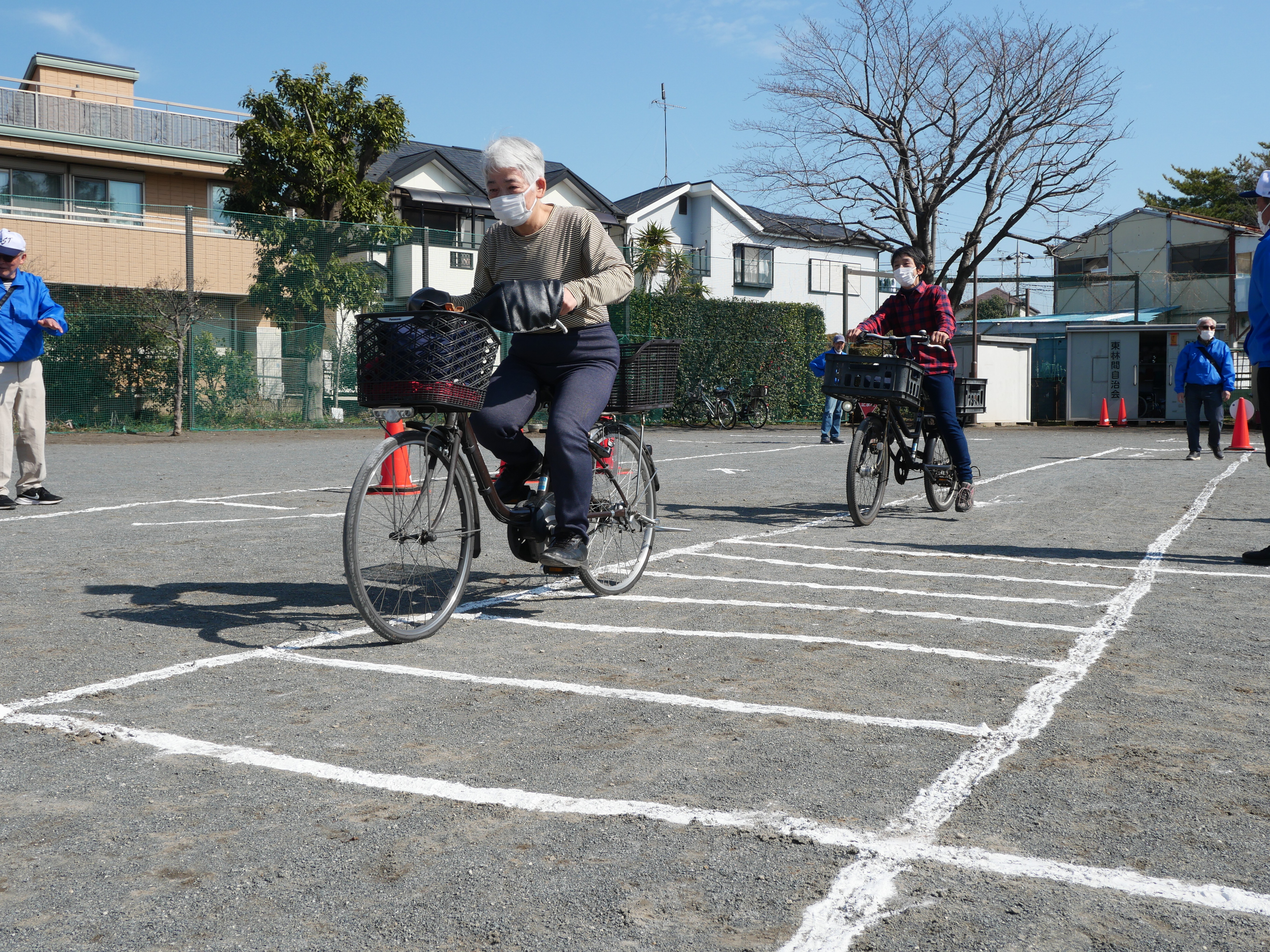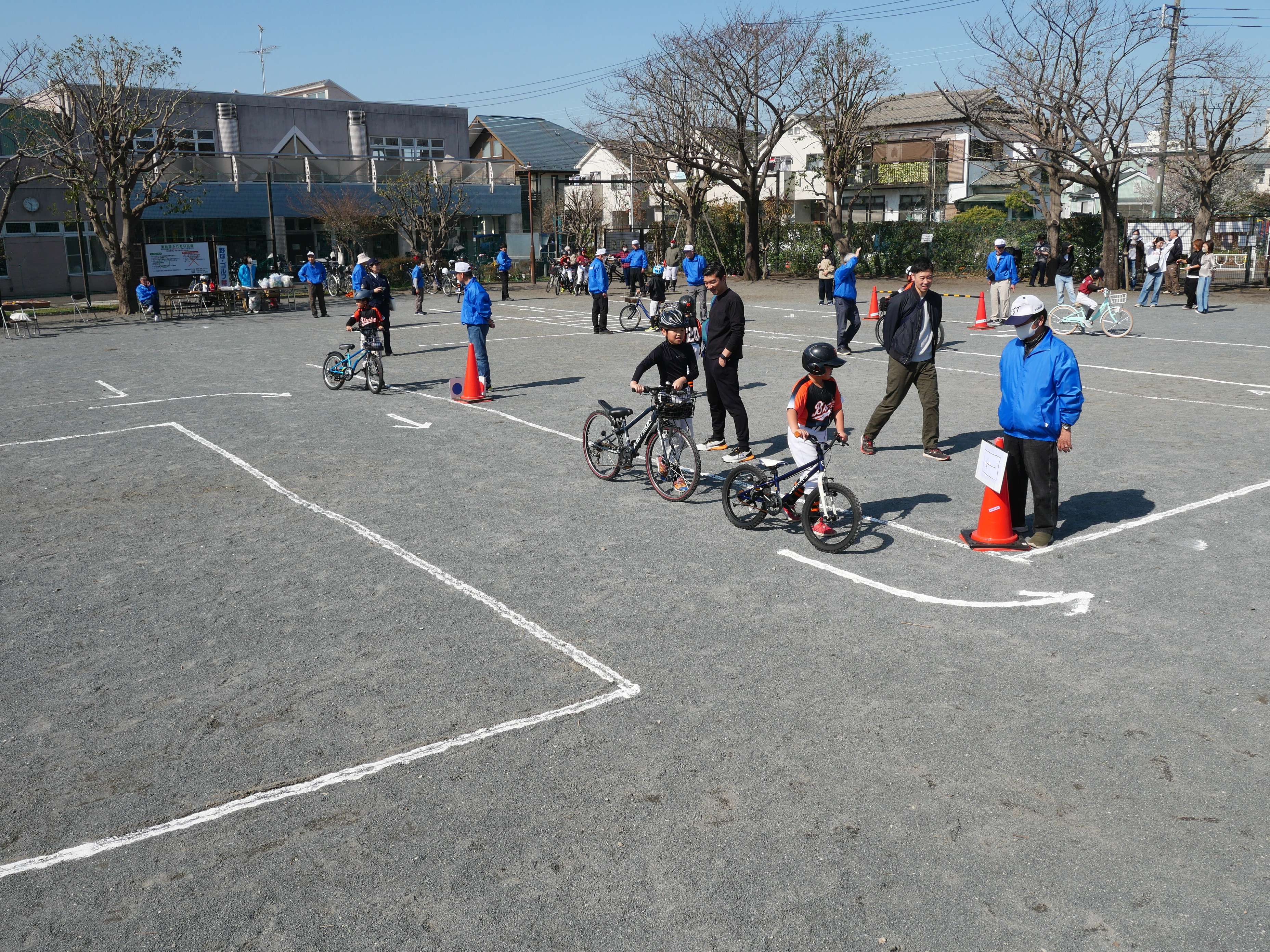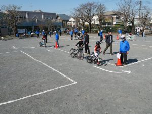 参加者はそれぞれ自転車に乗り、特設コースを回りながら安全な走行について指導を受けました。