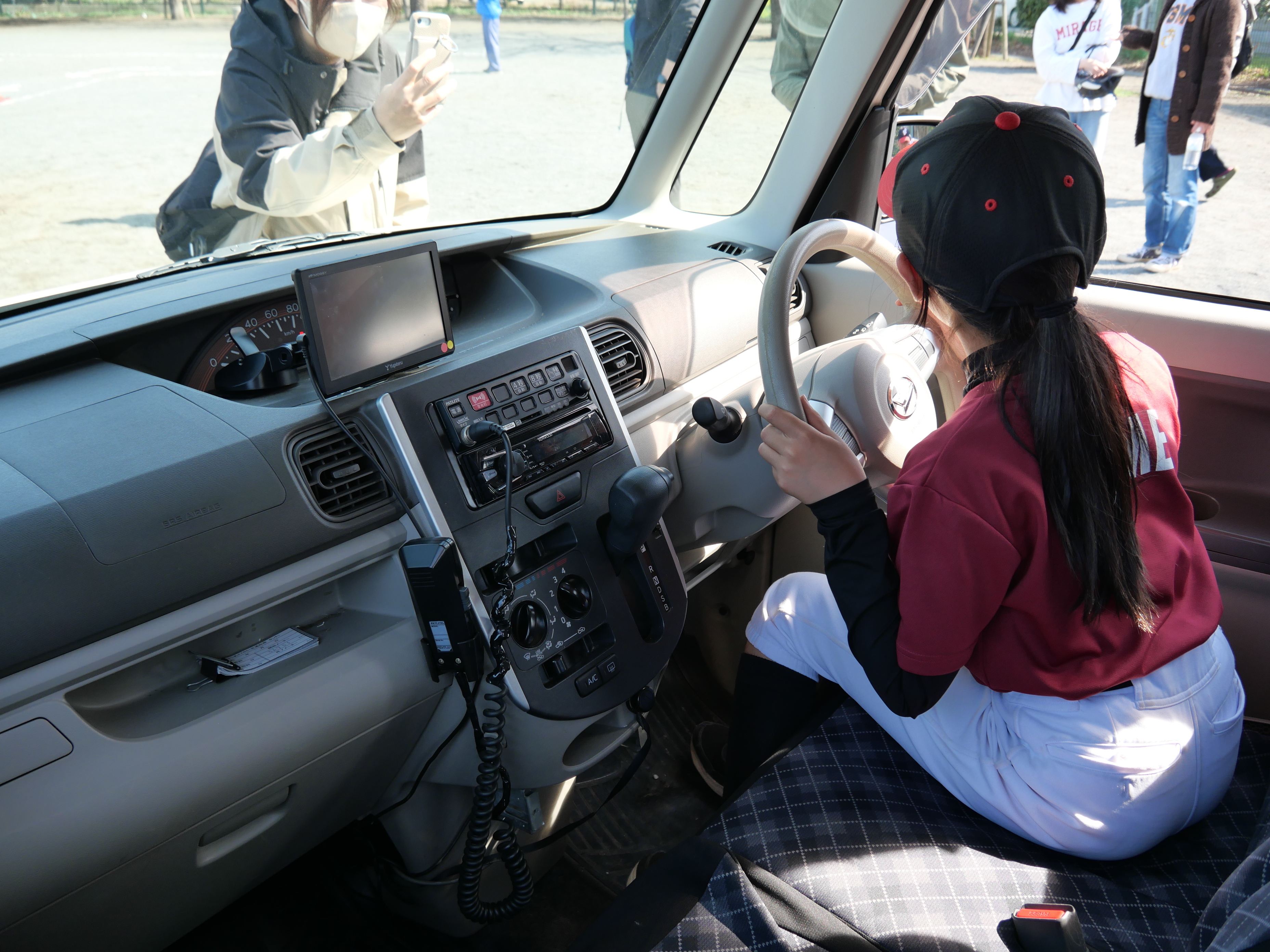 また、ミニパトカーを囲み、車両からの死角についての説明も受け、交通安全への理解を深めました。