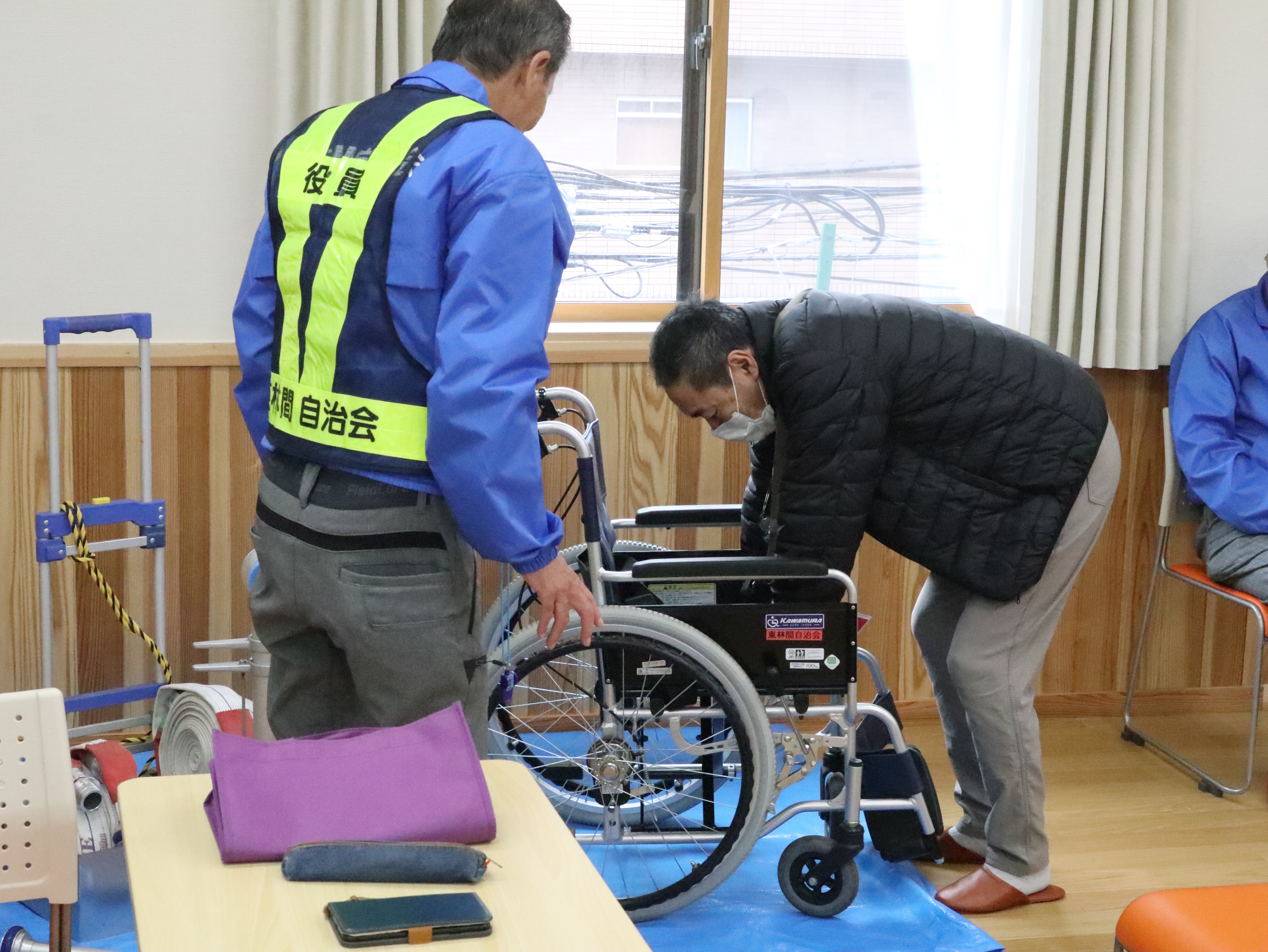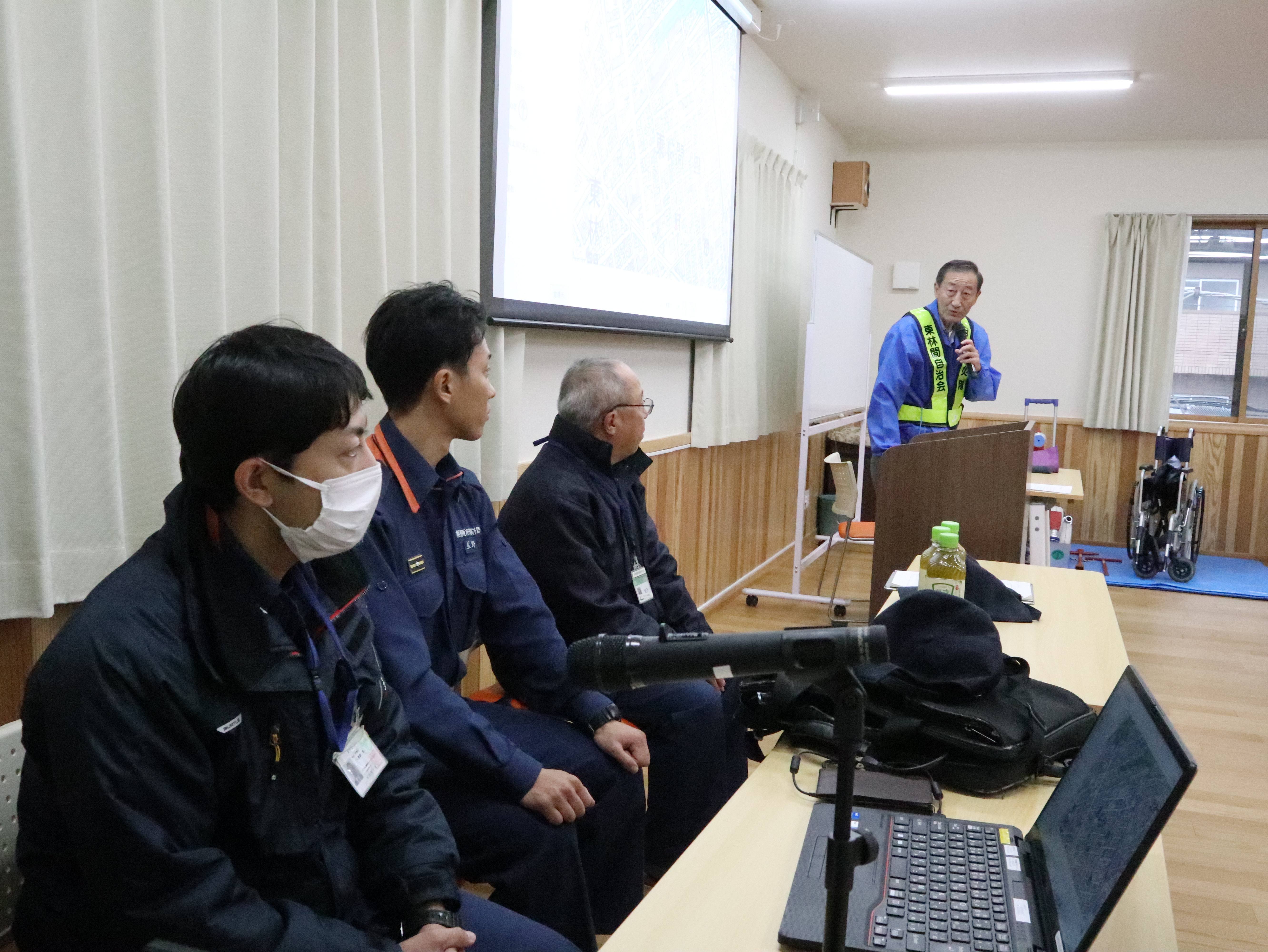 秋季防災訓練 10月26日(日)、防災部主催で秋の防災訓練を行いました。 今回は雨のため放水訓練は中止となりましたが、相模原市南消防署東林分署の皆さんをお迎えし 火災シミュレーションや車椅子の使い方を学びました。 参加された皆さんは熱心に説明を聞き、質問も交わしながら有意義な時間となりました。 雨の中ご参加くださった皆さま、ありがとうございました。 取材:広報部 A.T