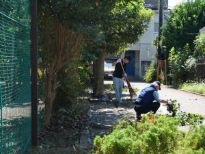 2025年9月21日(土)、東林間ふれあい広場にて除草作業を行いました。 暑さが続く中、役員20名と地元企業のボランティア4名が参加し フェンスに絡んだ草木や落ち葉の清掃を約2時間かけて実施しました。 作業中はこまめに水分補給・休憩を取りながら、無事に作業を終えることができました。 参加いただいた皆さま、本当にお疲れさまでした。 取材:広報部 A.T